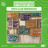 Aujourd’hui, dans Info Club Sandwich, nous recevons les organisatrices du festival “La folie s’en mel” ainsi que deux artistes qui performeront samedi : Bonnie et Korbo. “La folie s’en mel” est un espace artistique, politique et sécurisant autour de la…