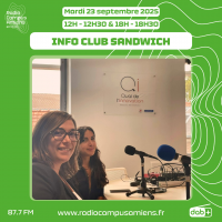 Dans Info Club Sandwich, on retourne à la JAE, Journée d’Accueil des Étudiant.es, de ce jeudi 11 septembre 2025, où Rémi a pu arpenter le village associatif et interviewer la Banque Alimentaire, qui combat le gaspillage alimentaire, ainsi qu’Emmaüs Somme,…
