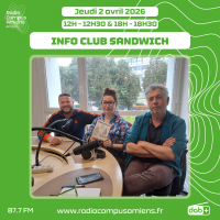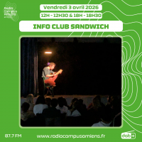 Aujourd’hui, on reçoit dans l’Info Club Sandwich l’artiste Melkior, pour parler de sa musique ! Côté musique, on s’écoute The lost lump, de Melkior et Girl crush, de Pete Wolf Band. En deuxième partie d’émission, Sonia présente les actualités locales de…