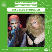 Aujourd’hui, dans l’Info Club Sandwich, nous recevons Méga Tunning, Sister Derche et Paku d’Amiens Roller Derby comme invité du jour. Iels nous ont parlé de leur sport badass et bienveillant ainsi que leur actualité. Côté musique, on s’écoute “Utatane” de…
