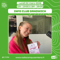 Dans l’Info Club Sandwich de ce début mars, on reçoit Olivia, présidente de l’association Robins des Arts qui est venue nous parler de leur festival Rêvolution 2000. Il aura lieu ce samedi 07 mars au cloître Dewailly à Amiens et…
