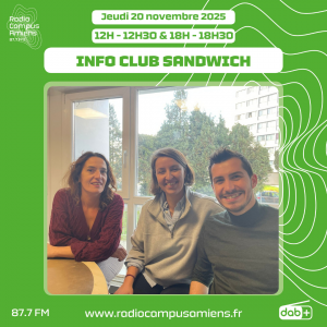 Aujourd’hui, Margaux vous parle de l’agenda culturel. Au programme : ce vendredi 21 novembre, rendez-vous à 18h à l’Étoile de Sud à Amiens, avec l’artiste graffeur Kwes, dans le cadre de sa participation au projet Dedans/Dehors – Quand l’art arrête les passants. L’exposition sera visible du 21 novembre 2025 au 5 janvier 2026. Puis, ce samedi 22 novembre, la bouquinerie de Sart à Amiens Sud organise une journée solidaire où tout est à 1€, dans le but de soutenir leur mission d’accompagnement vers l’emploi et d’offrir une belle expérience aux personnes qu’ils accompagnent. Jusqu’au 12 décembre prochain, les inscriptions au Challenge Amiens Campus sont ouvertes aux étudiant.es issus des établissements d’enseignement supérieur d’Amiens Métropole, en formation initiale ou en formation continue. Ainsi, les étudiants peuvent candidater dans l’une des deux catégories : idéation ou création !