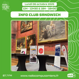Aujourd’hui, dans Info Club Sandwich, nous écoutons Margaux qui s’est rendue à la Nuit des Étudiant.es du Monde, mardi 30 septembre dernier au Musée de Picardie. Elle a pu interviewer des étudiantes et étudiants présentes ainsi que les auteurices de cet événement, organisé par le Crous d’Amiens Picardie, Amiens Métropole et l’Université de Picardie Jules Verne.