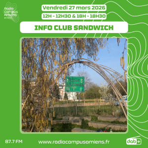 Aujourd’hui, dans l’Info Club Sandwich de ce vendredi, on écoute le reportage réalisé par Aurélie, une habitante du quartier Rollin. Elle nous emmène à la rencontre de Sébastien Cahon, au Jardin du Bouleau – un espace partagé de l’Association Amiénoise Enfance et Culture.