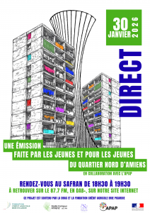 Radio Campus Amiens a organisé un direct en partenariat avec l’APAP où les jeunes du quartier Nord ont réalisé une émission pour eux où ils ont parlé de leur quartier. Pour cela, ils vous ont préparé des chroniques, des interviews, etc…