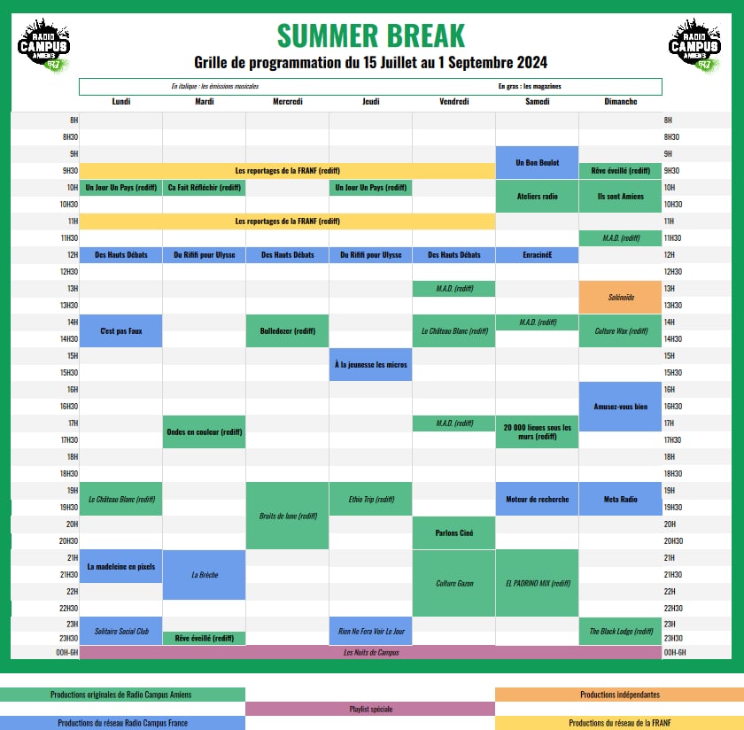 SUMMER BREAK : Grille de programmation du 15 Juillet au 1 Septembre 2024 !